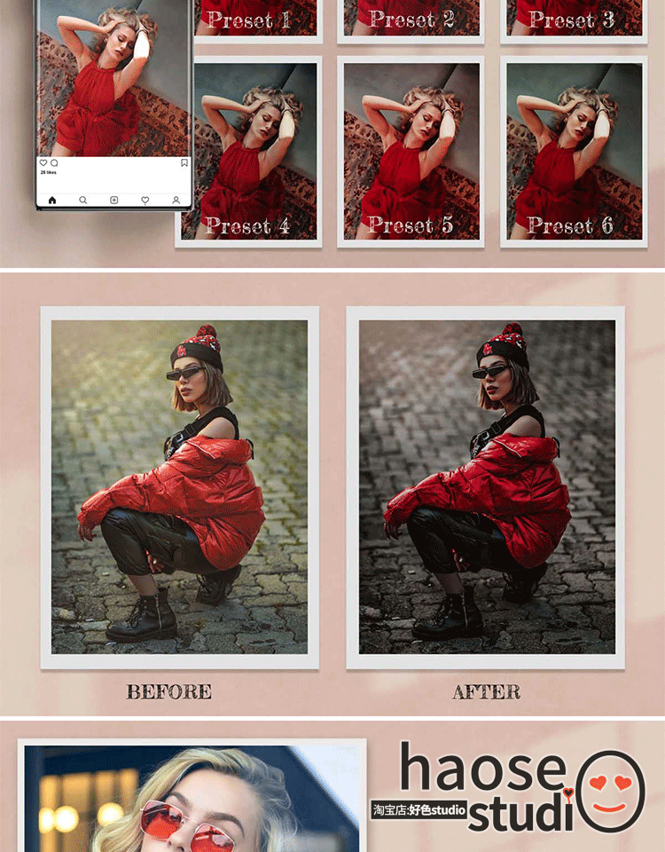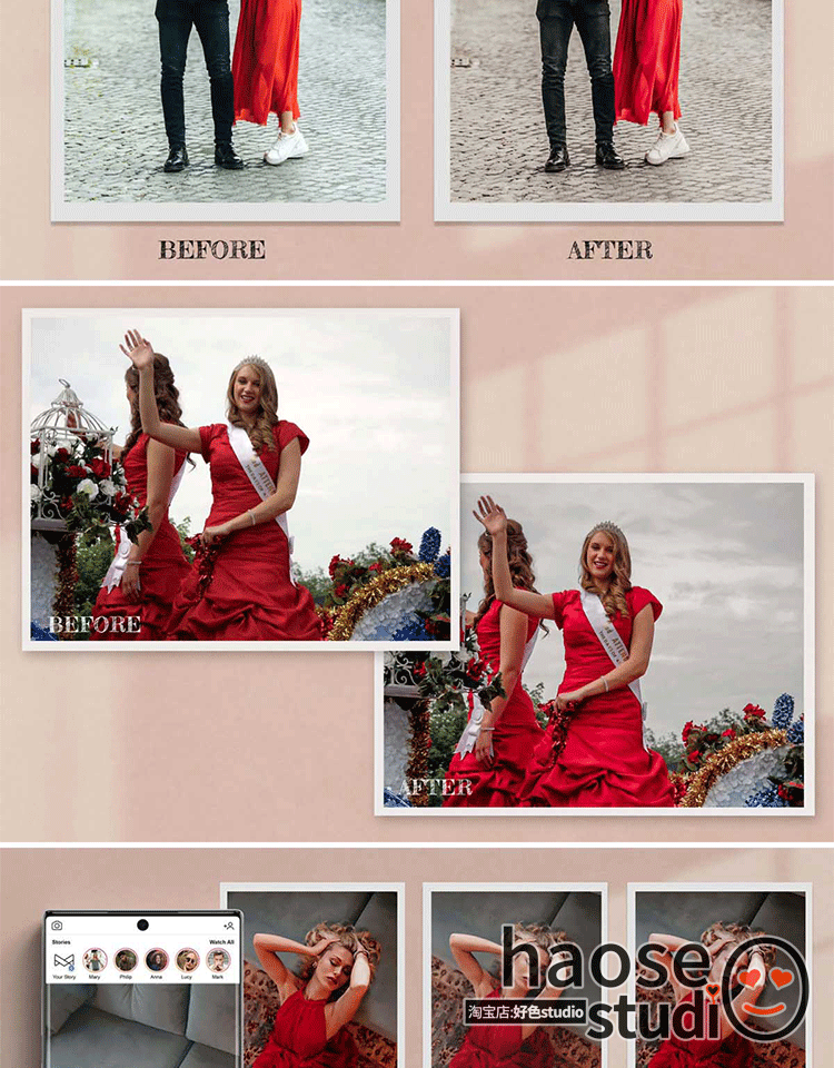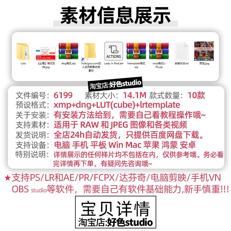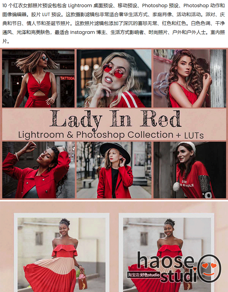 Lr调色预设剪映LUT调色pr达芬奇红衣女郎摄影调色10款Lady In Red