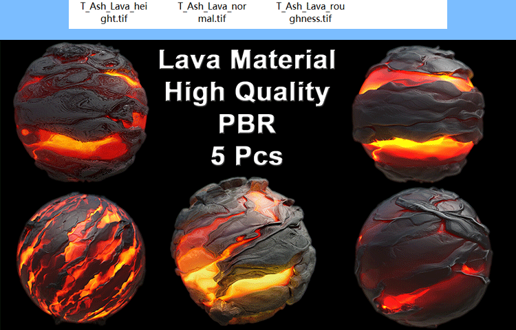 SP Pt材质通道贴图C4D熔浆火山岩浆PBR纹理5款MAX素材Blend MAYA