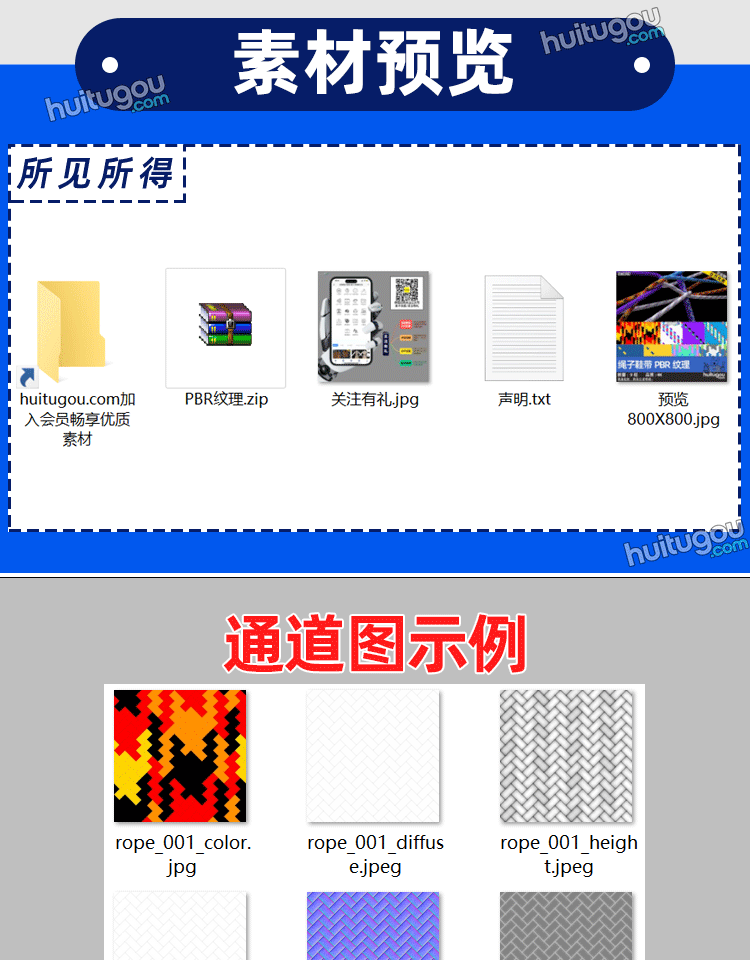 C4D粗麻绳材质贴图Blender绳子编织材质PBR纹理6款MAX无缝贴图包
