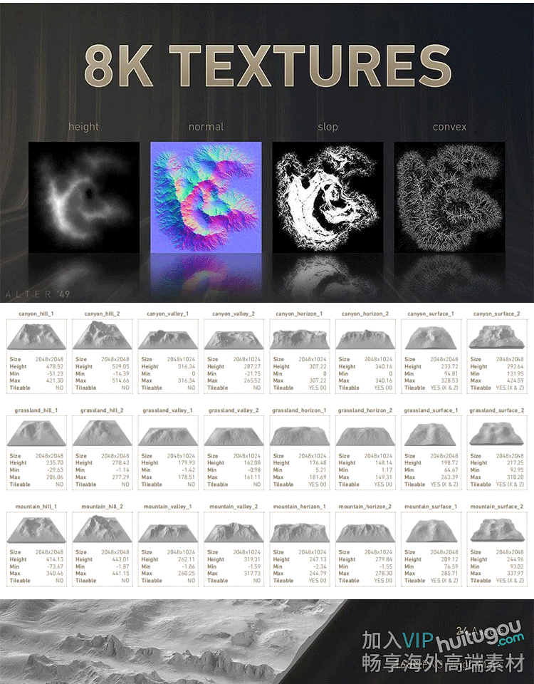Blender材质通道贴图C4D山脉地形山峰PBR纹理24款8K高清3D设计ZB