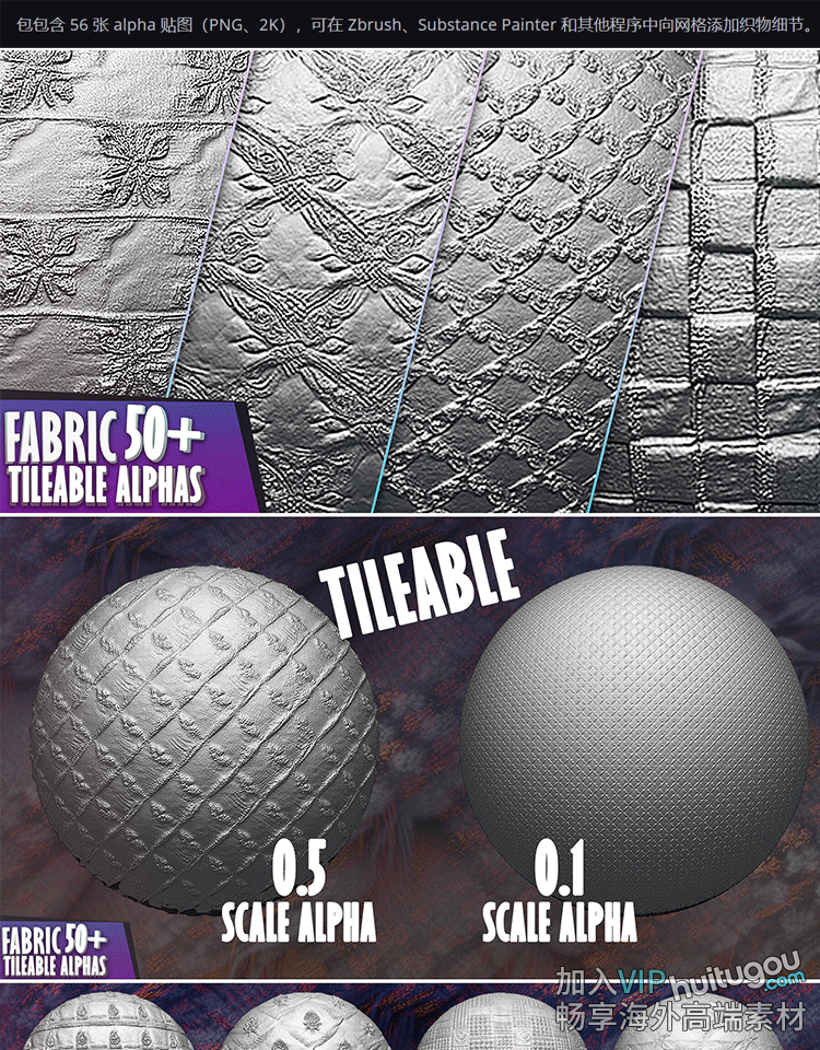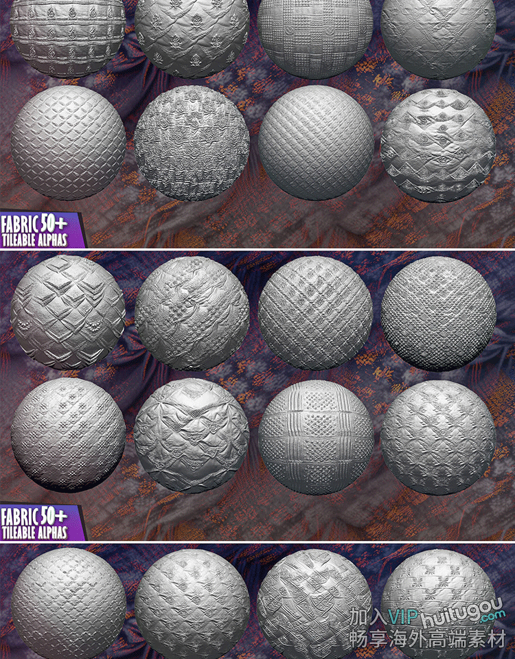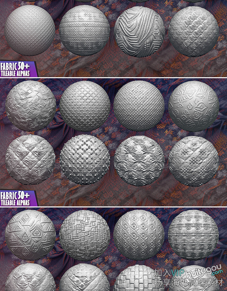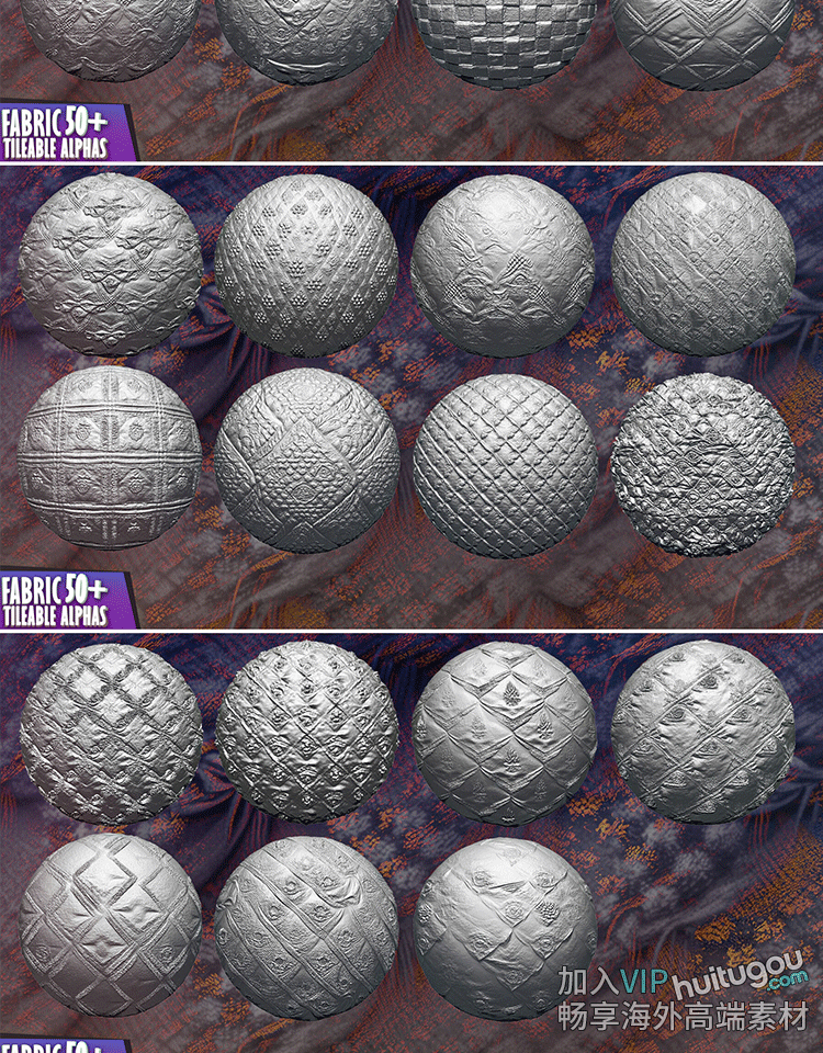 ZBrush笔刷ZBP素材60款织物布料纹理Alpha贴图灰度图ZB高度图png