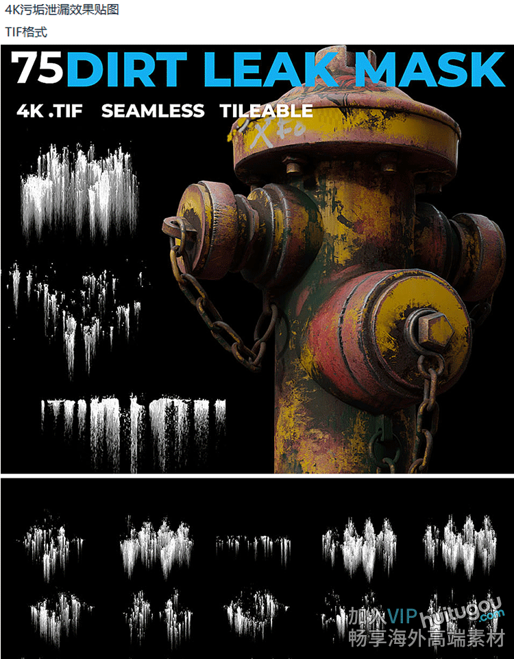 Pt SP水渍污垢液体泄漏Alpha贴图75款4K无缝贴图黑白遮罩灰度图