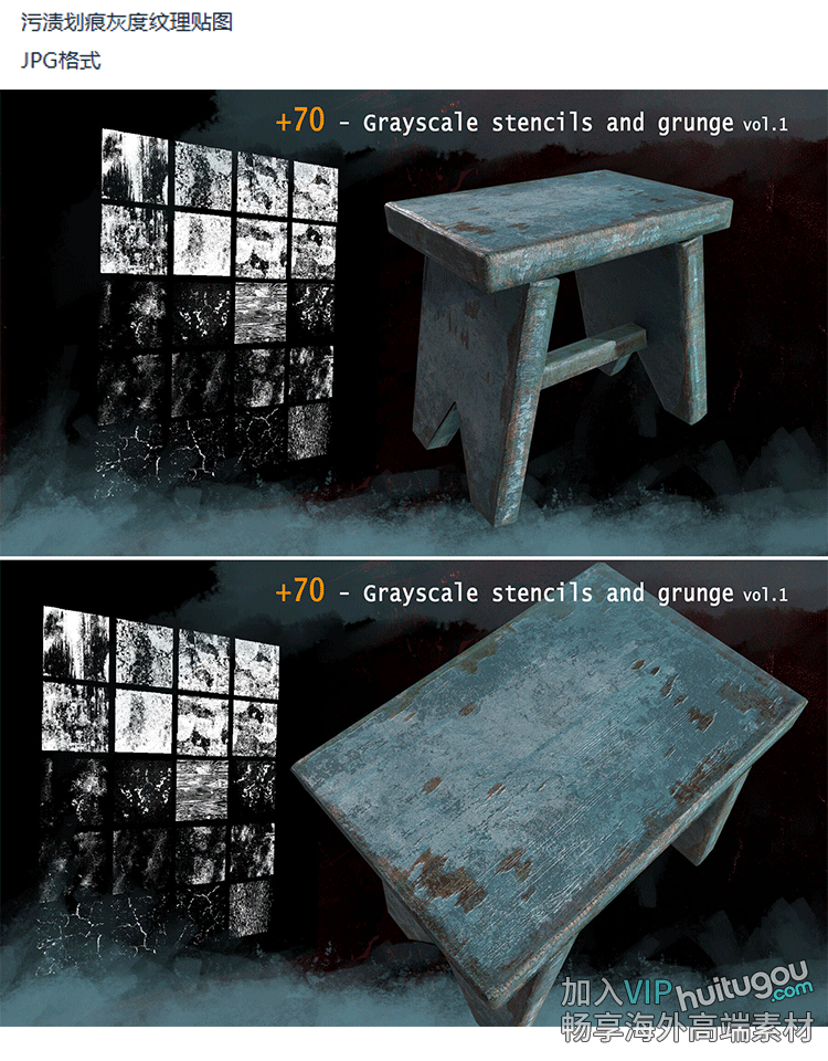 Pt SP木材做旧掉漆缺陷划痕开裂斑驳Alpha贴图72款黑白无缝贴图
