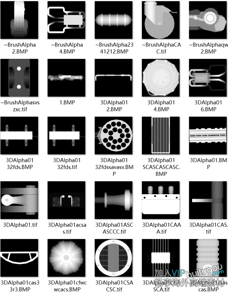 ZB雕刻建模灰度图黑白贴图ZBrush科幻机械硬面Alpha贴图150款