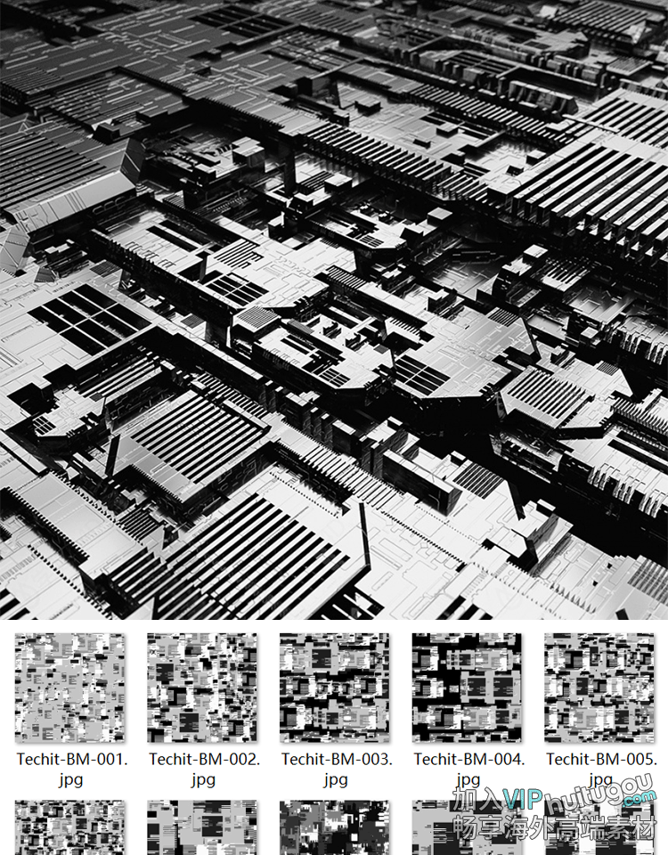 ZB雕刻建模灰度图黑白贴图ZBrush科幻机械硬面Alpha贴图150款