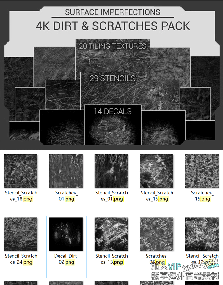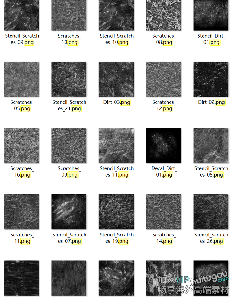 Pt黑白贴图SP材质粗糙度划痕缺陷污垢Alpha贴图110款4K无缝灰度图