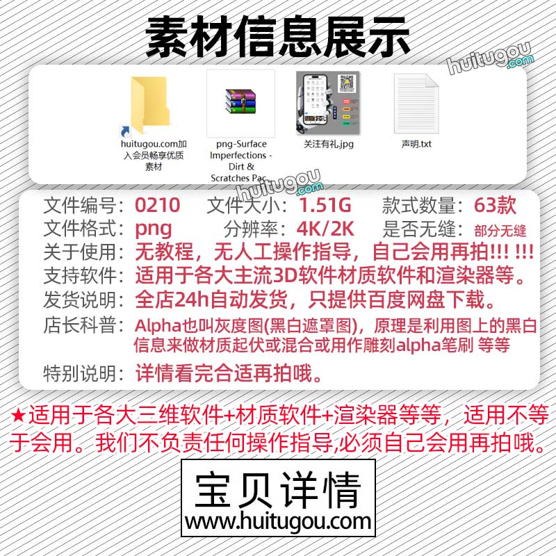 C4D材质粗糙度贴图Blender缺陷污垢划痕Alpha贴图63张材质通道图