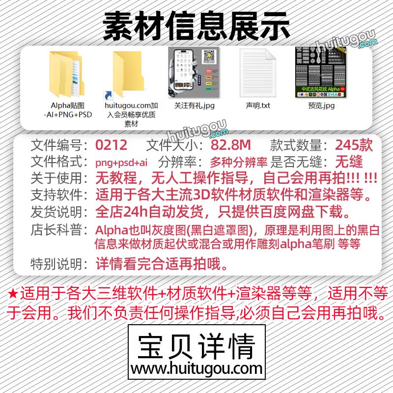 MD/CLO中式古风黑白贴图C4D花纹Alpha贴图245张混合遮罩贴图合集