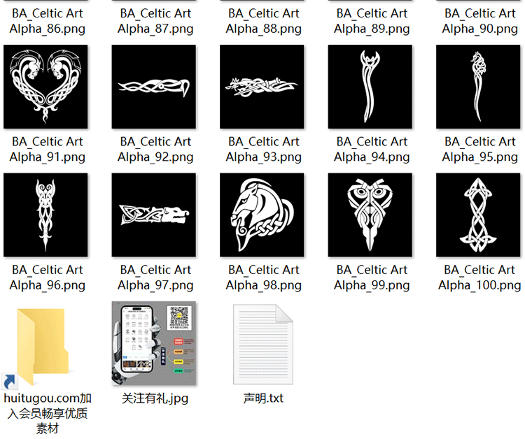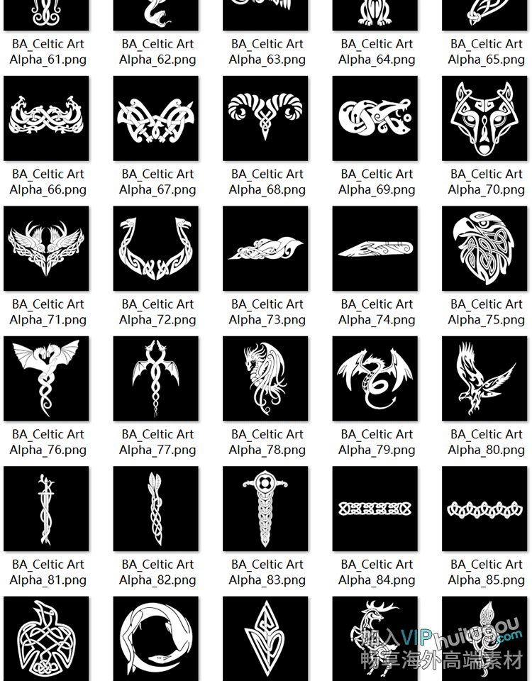 Pt/SP图腾图案黑白贴图C4D材质纹理凯尔特风装饰Alpha贴图100张