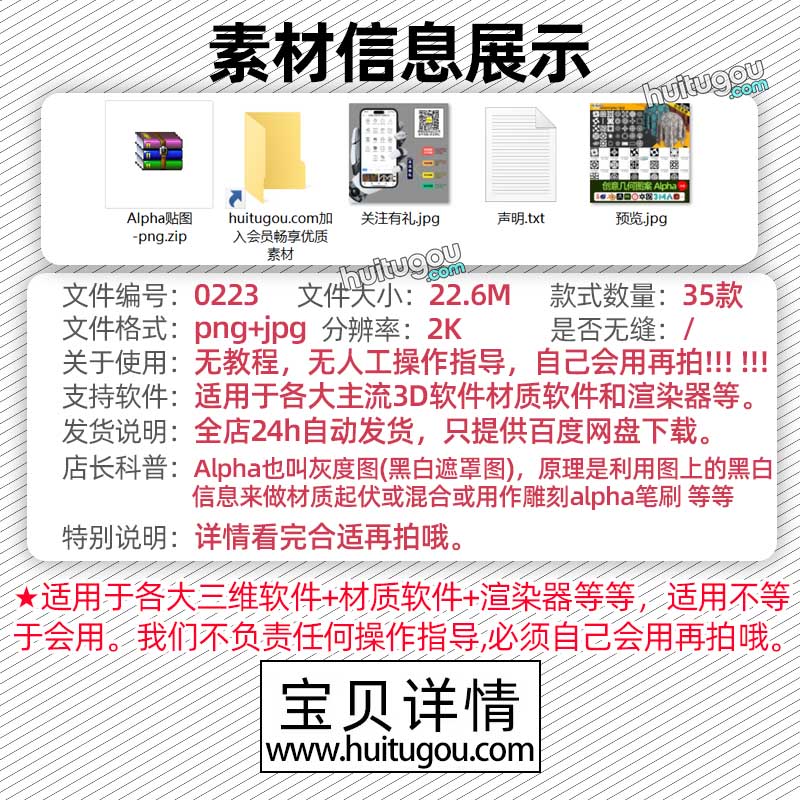 SP/Pt黑白遮罩贴图Blender材质纹理C4D创意几何图案Alpha贴图35张