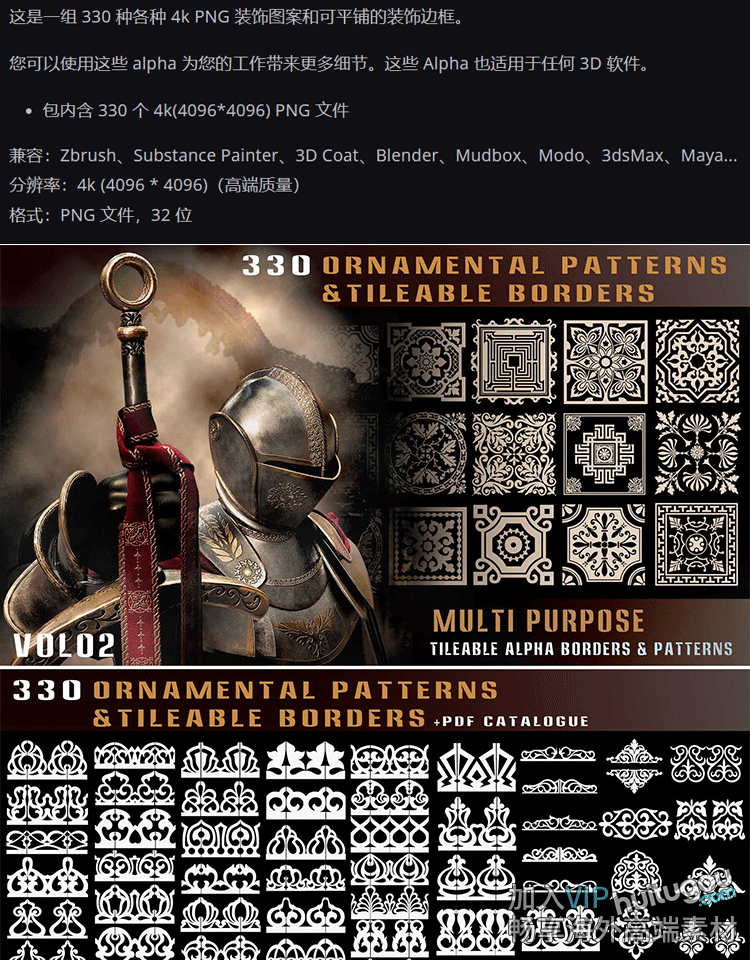 SP/Pt阿尔法Blender装饰花纹雕花Alpha贴图1420张4K高清无缝纹理