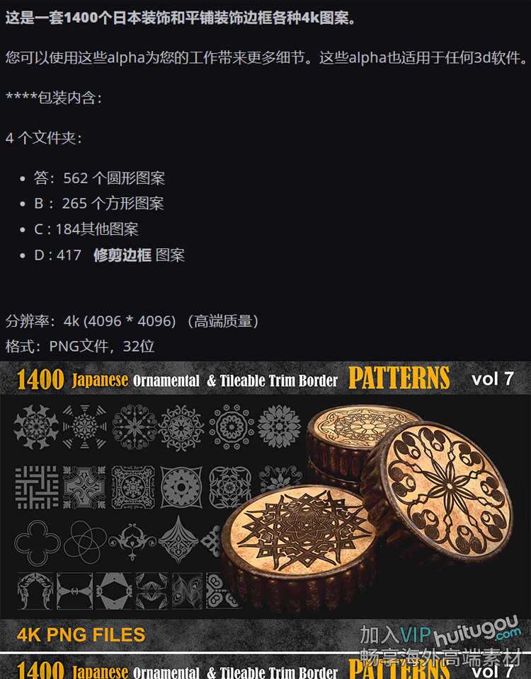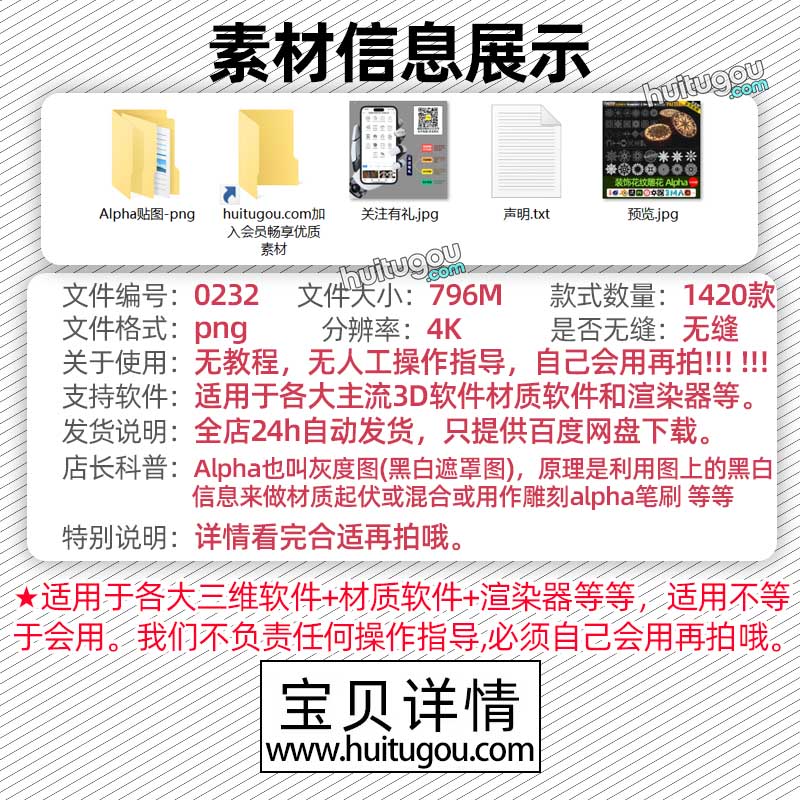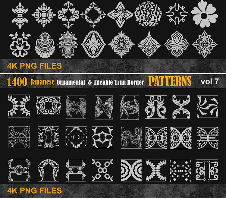 SP/Pt阿尔法Blender装饰花纹雕花Alpha贴图1420张4K高清无缝纹理