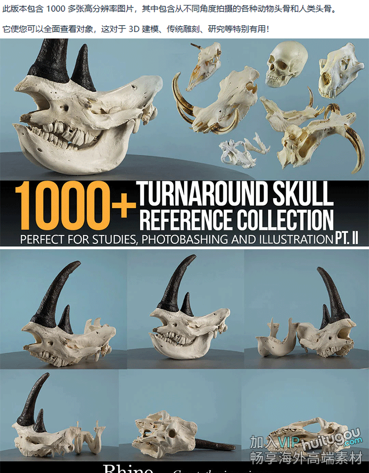 人类动物生物头骨参考图1000+张 插画概念艺术CG设计建模雕刻参考