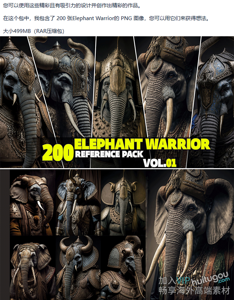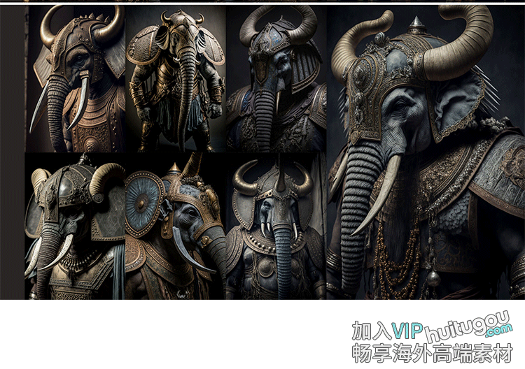 大象战士插画参考图200张 游戏影视插画海报概念CG设计3D建模雕刻