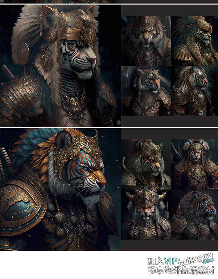 老虎武士战士参考图200张 游戏影视插画CG设计3D建模雕刻纹理参考