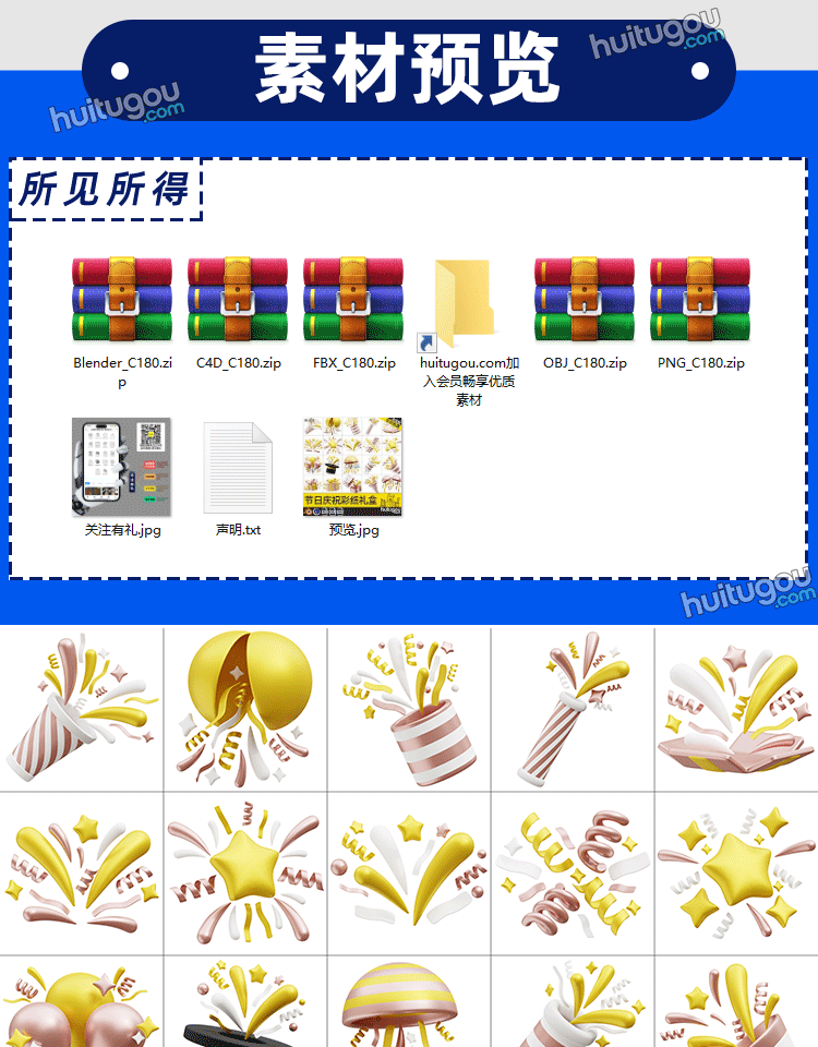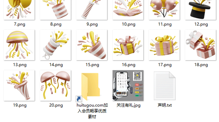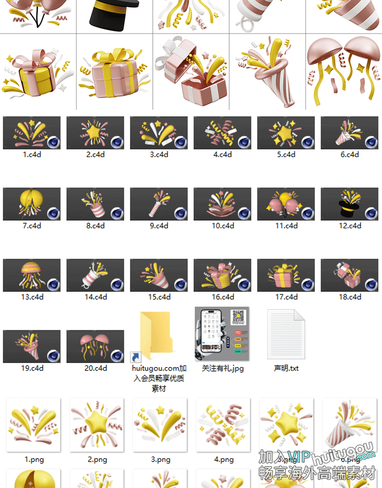 Blender节日庆祝彩纸礼盒png图标3D卡通模型C4D彩蛋礼盒气球OBJ