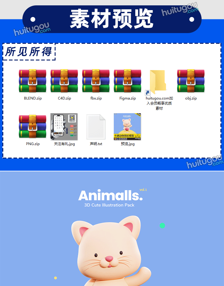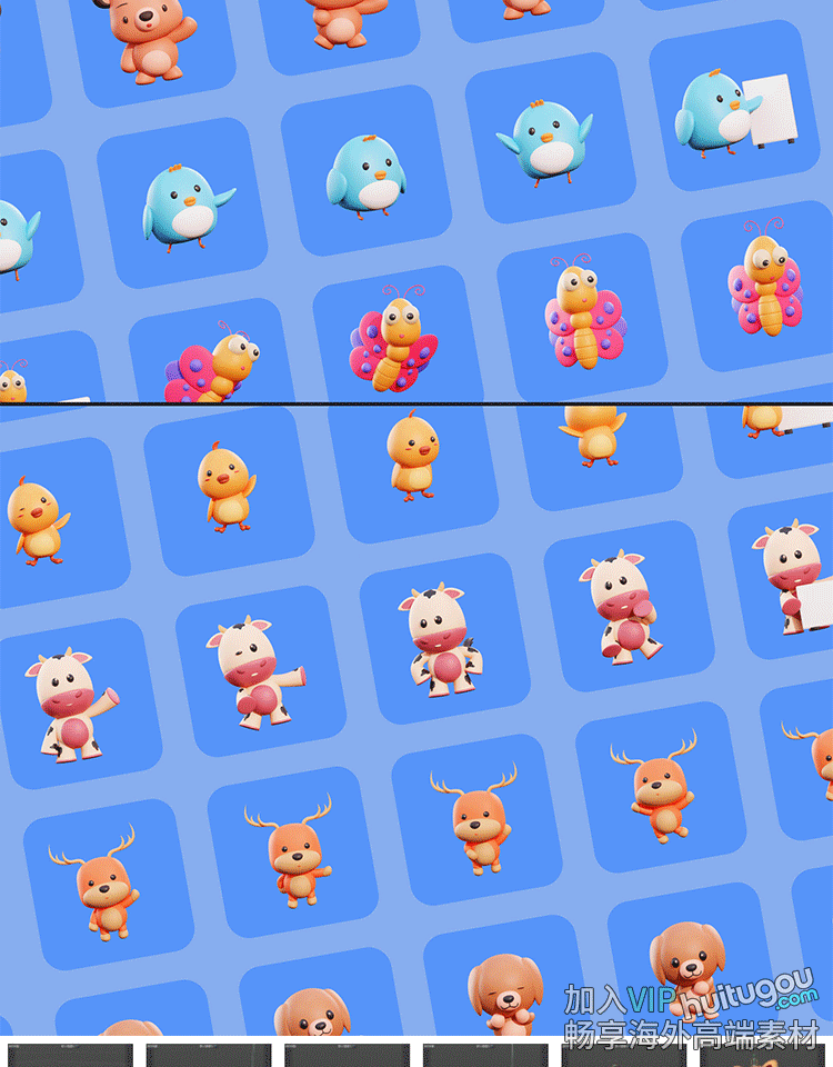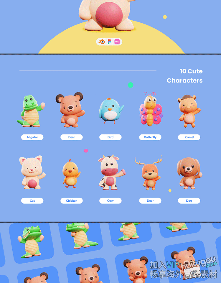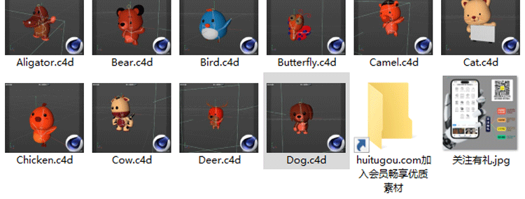 Blender卡通动物ICON图标3D模型C4D猫狗牛鸡骆驼蜜蜂鸟鳄鱼熊麋鹿