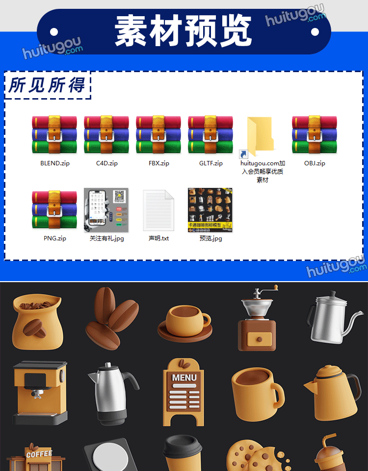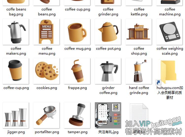 Blender卡通咖啡研磨png图标3D模型C4D素材FBX OBJ咖啡豆杯子菜单