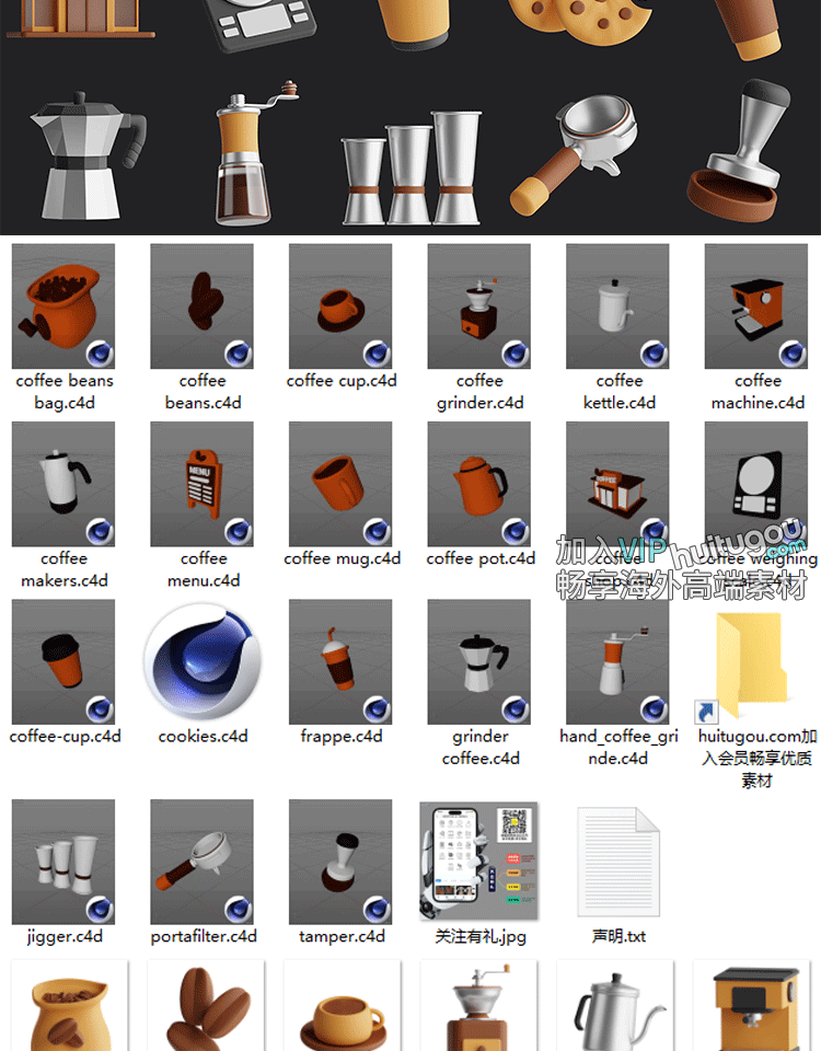 blender卡通咖啡图标模型C4D咖啡机咖啡豆FBX杯子OBJ素材png图标
