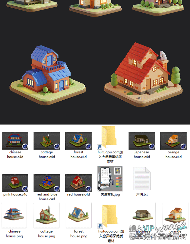 Blender卡通楼房建筑房子ICON图标3D模型C4D独栋别墅楼房FBX OBJ