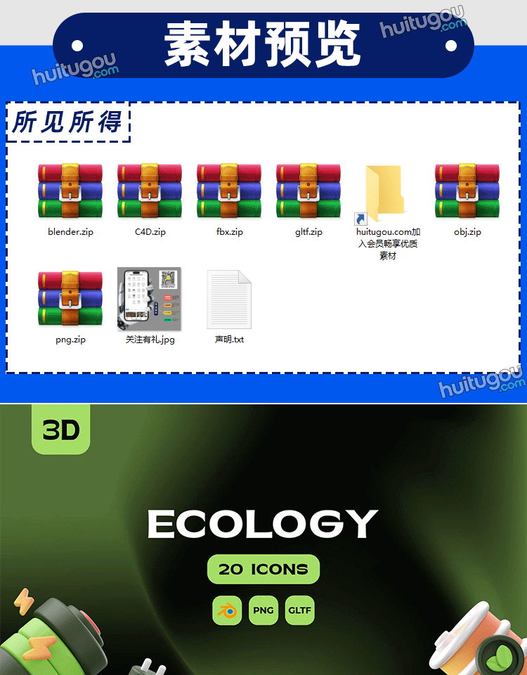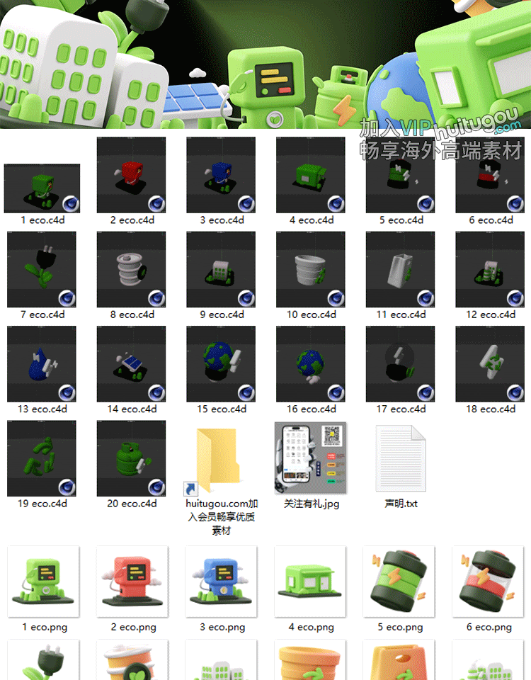 Blender绿色环保回收节能ICON图标png素材3D模型C4D格式GLTF电能