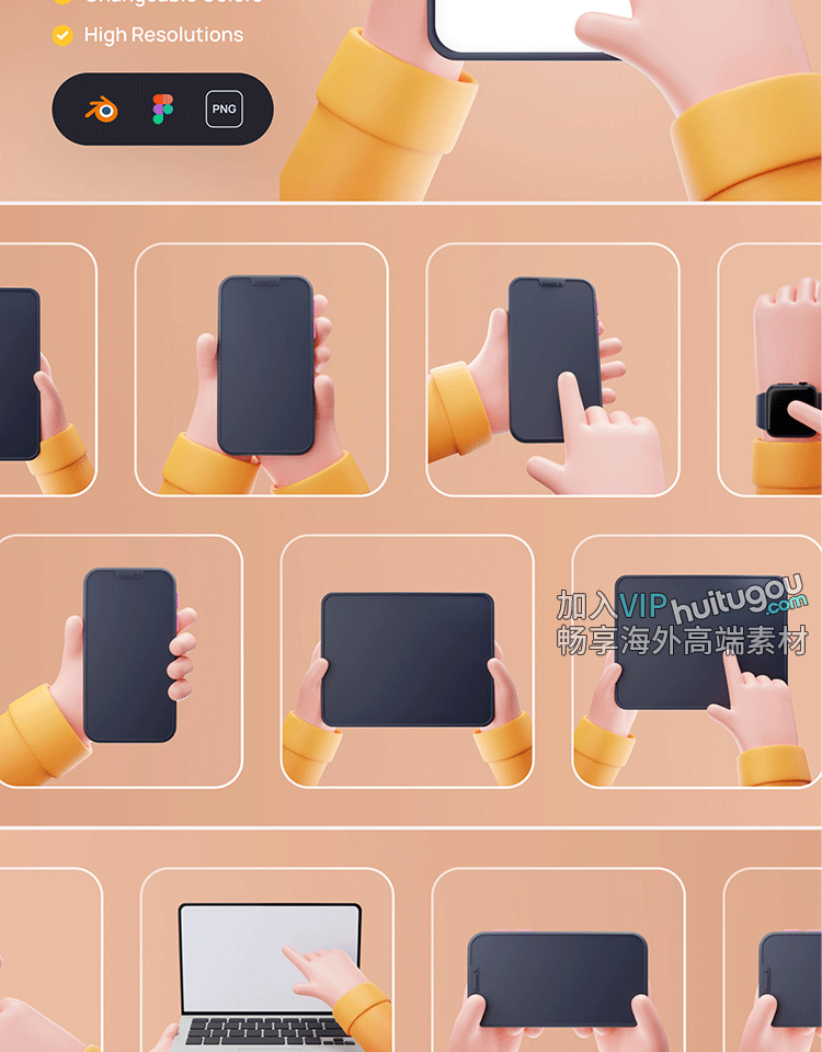 blender手持电子设备模型手机平板obj电脑笔记本模式素材png图标