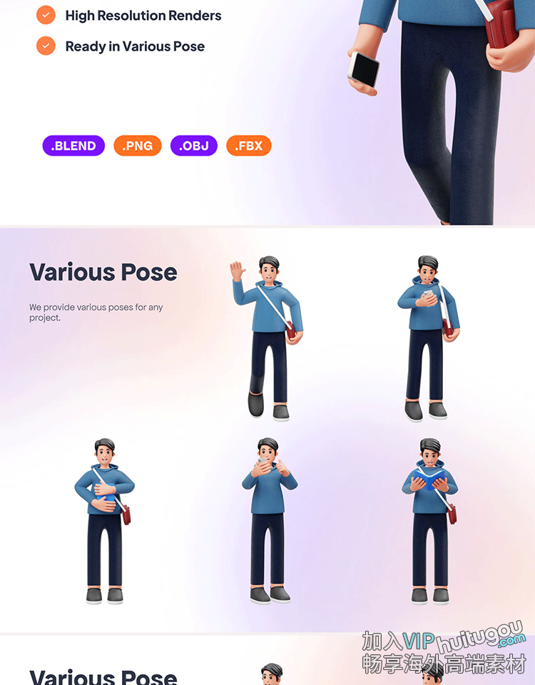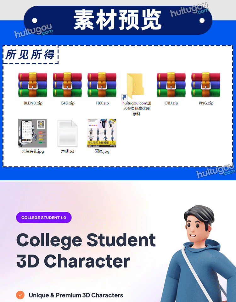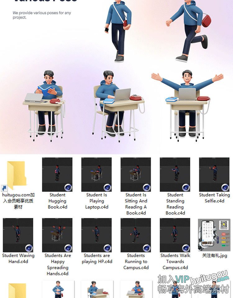 blender学生学习上课3D模型课桌人物fbx站姿坐姿建模素材png图标