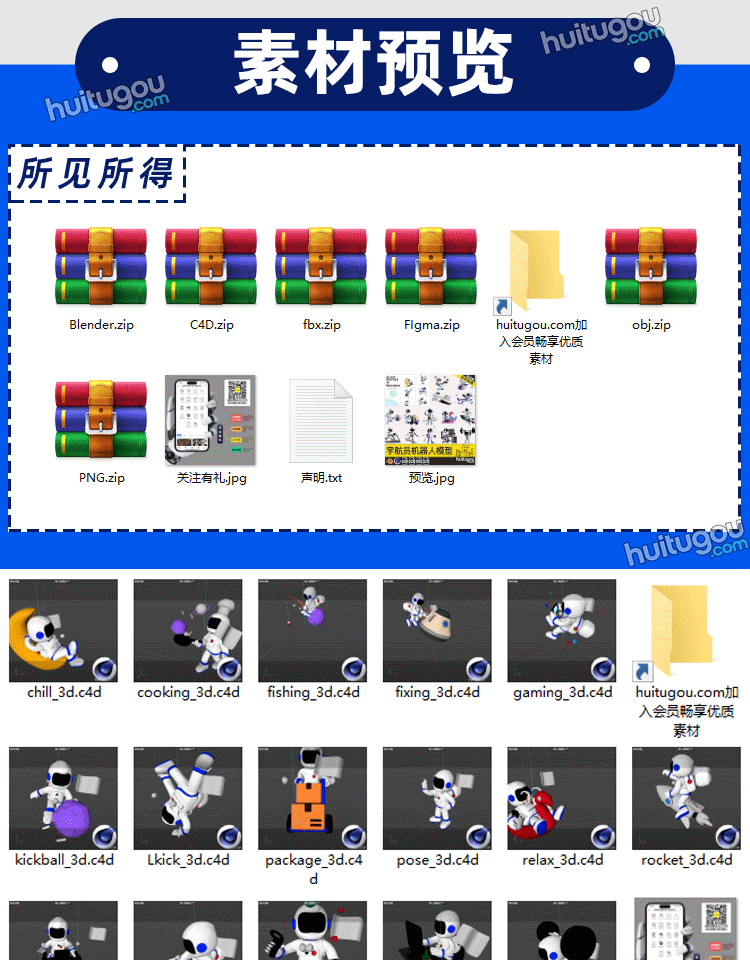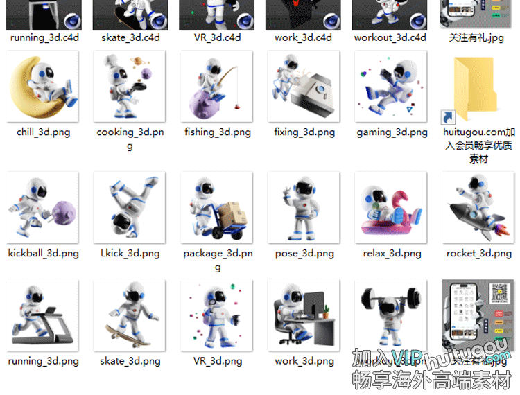 blender卡通宇航员机器人模型C4D健身举重工作人物FBX素材png图标