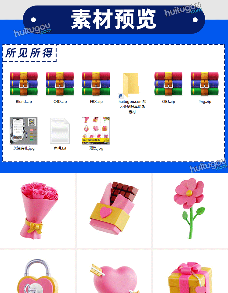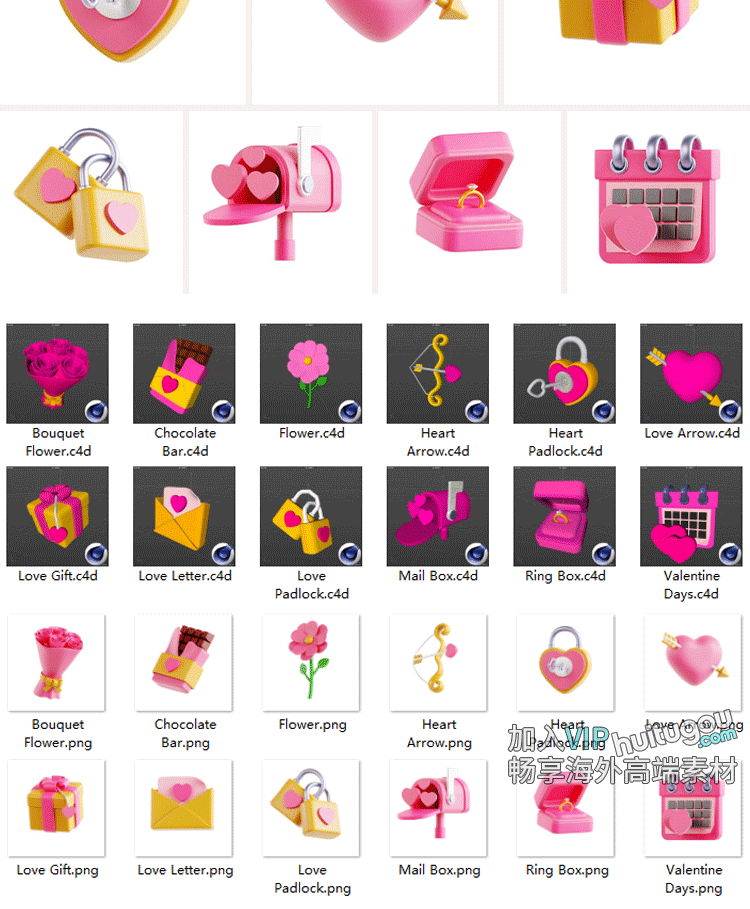 blender情人节礼物模型C4D爱情心箭礼物盒FBX花束花朵戒指爱情锁