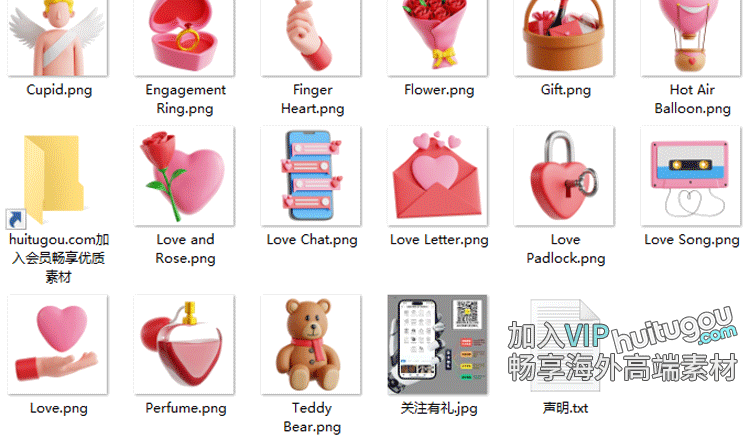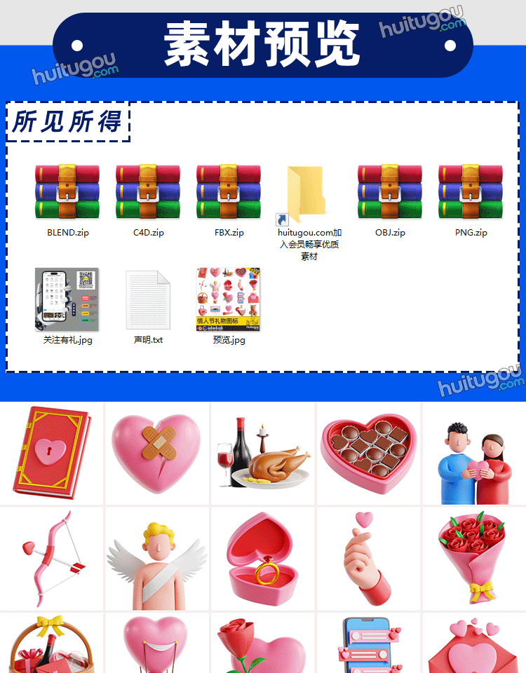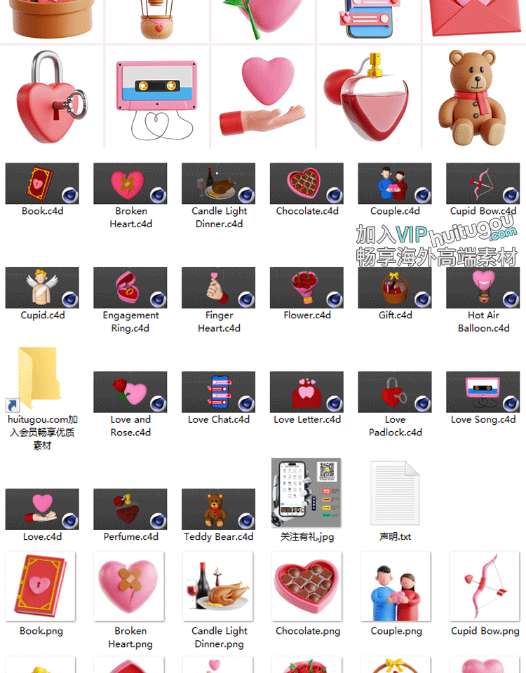 blender情人节图标3D模型玫瑰花束玩具熊心形C4D戒指手捧心形素材