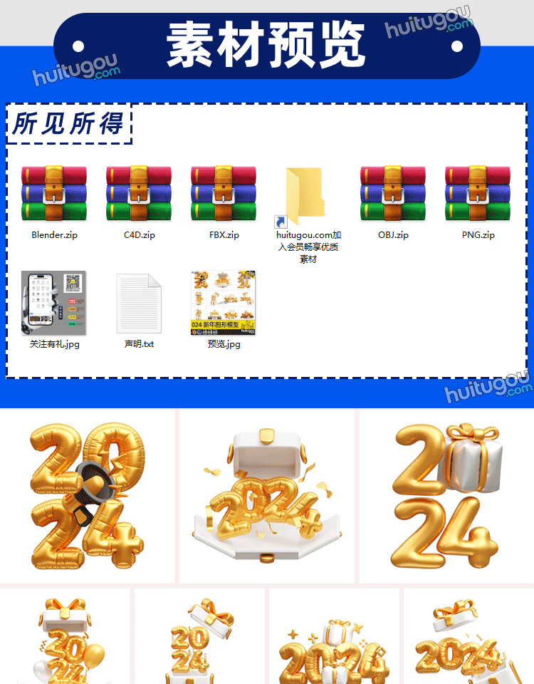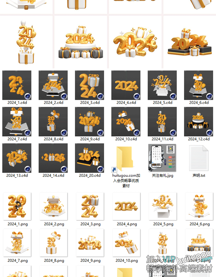 Blender2024新年快乐图形模型C4D数字气球礼物FBX礼盒OBJ素材文件