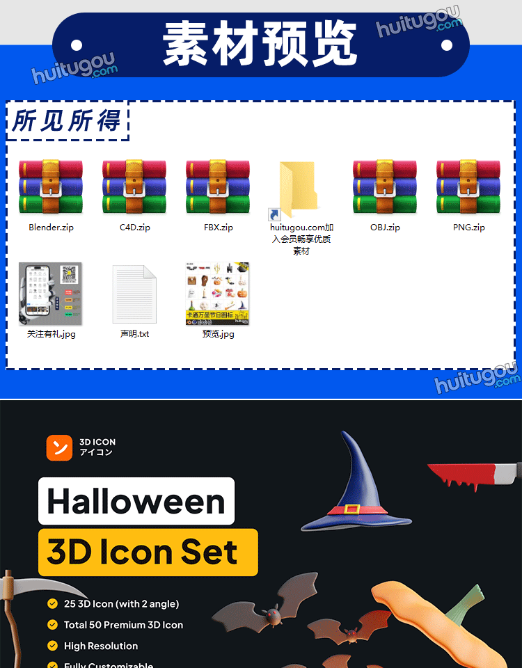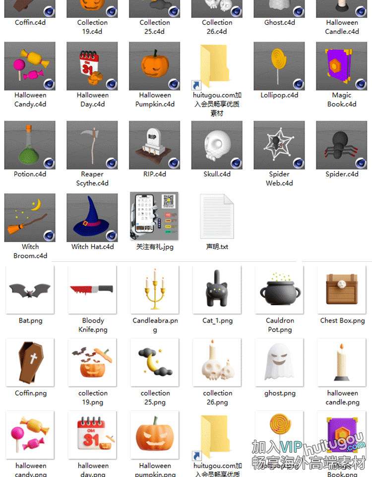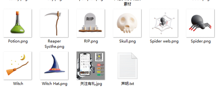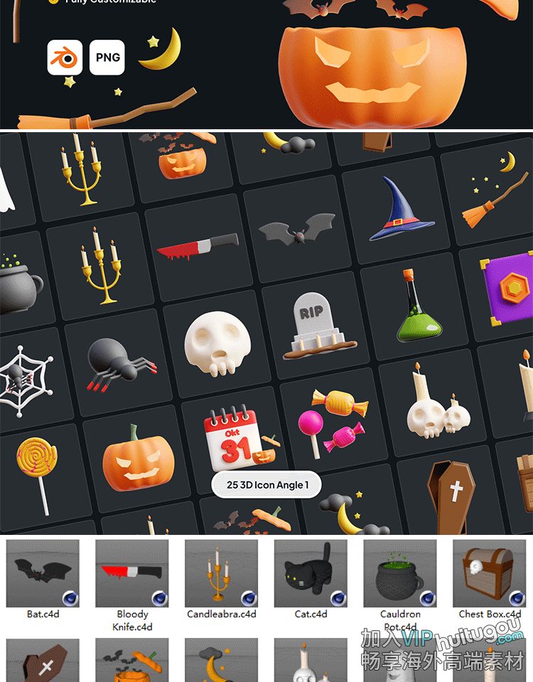 Blend万圣节日道具图标ICON模型附PNG糖果蜘蛛网蜡烛骷髅南瓜OBJ